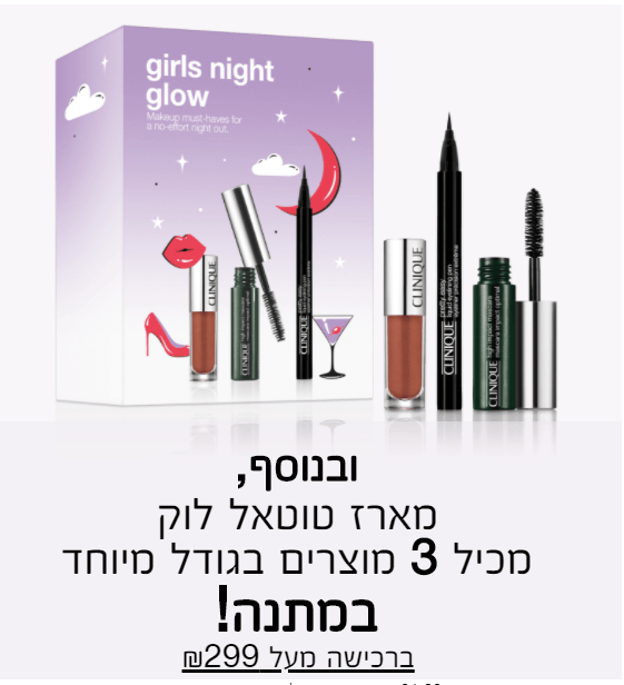 מגוון המייק-אפים של קליניק ב – 115 ש"ח בלבד! לצפיה לחצו כאן >>