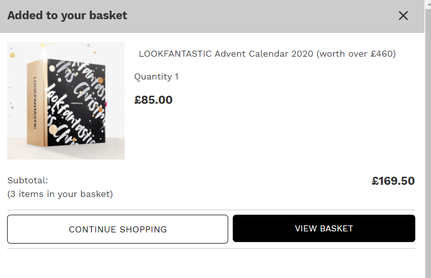 4. מי שרוצה להוסיף מנוי לביוטי בוקס של לוק פנטסטיק ולקבל 15 פאונד הנחה תלחץ CONTINUE SHOPPING ומי שלא רוצה, תלחץ VIEW BASKET