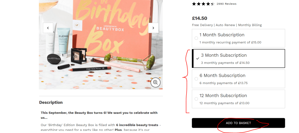 7. בדף הבא תבחרי את סוג המנוי, אני מזכירה שרק מ-3 חודשים מקבלים את ההנחה ואז הוסיפי את הקופסה לסל הקניות (ADD TO BASKET):