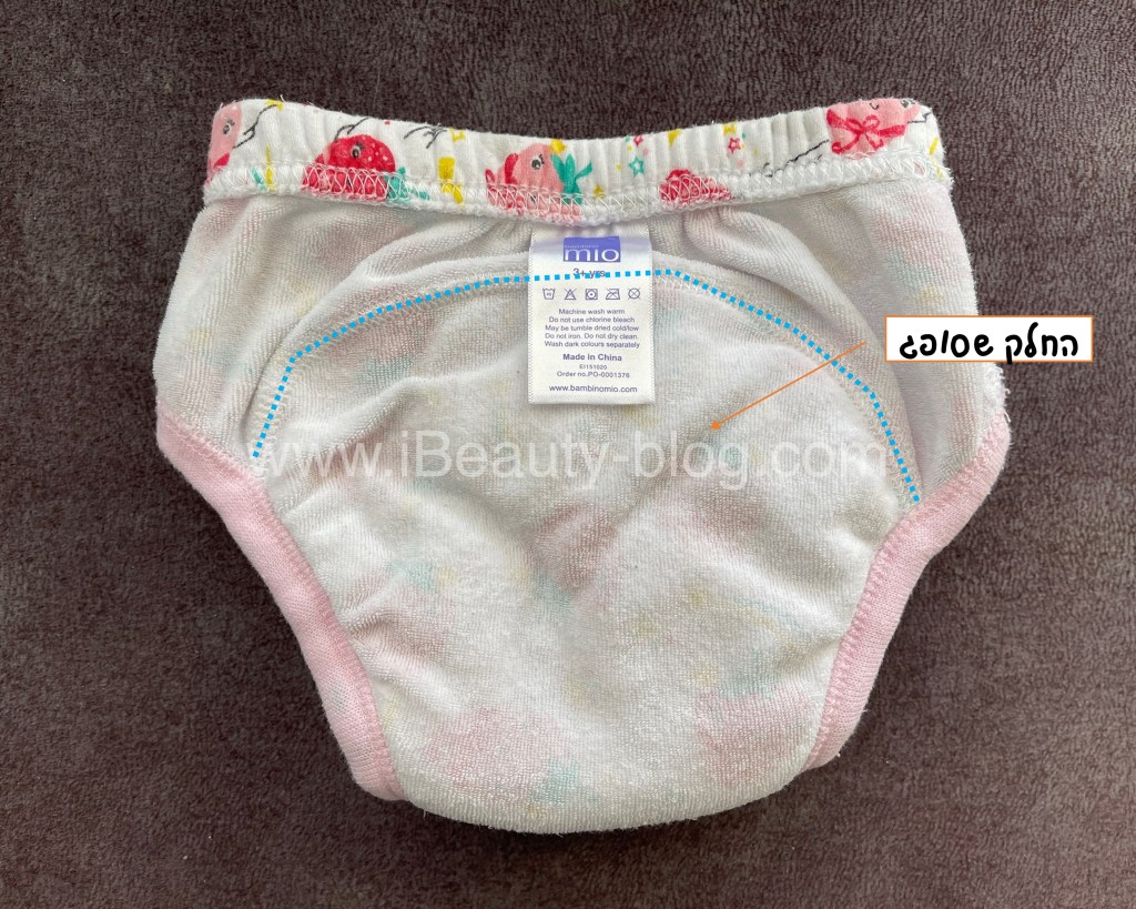 הוראות כביסה לתחתוני גמילה מחיתולים של במבינו מיו – לגבי הכביסות, צריך לעשות כביסה ב-40 מעלות עם אבקת כביסה וללא מרכך. חשוב מאוד לפני השימוש הראשון יש לעשות כביסה ראשונית ב-40 מעלות, אחרת הם לא יספגו טוב. לתלות לייבוש. לגבי המייבש, אפשר לשים אותם במייבש אבל זה לא מומלץ, זה מקצר את אורך החיים שלהם (ואני מתכננת לשמור אותם גם לתינוק שלנו).