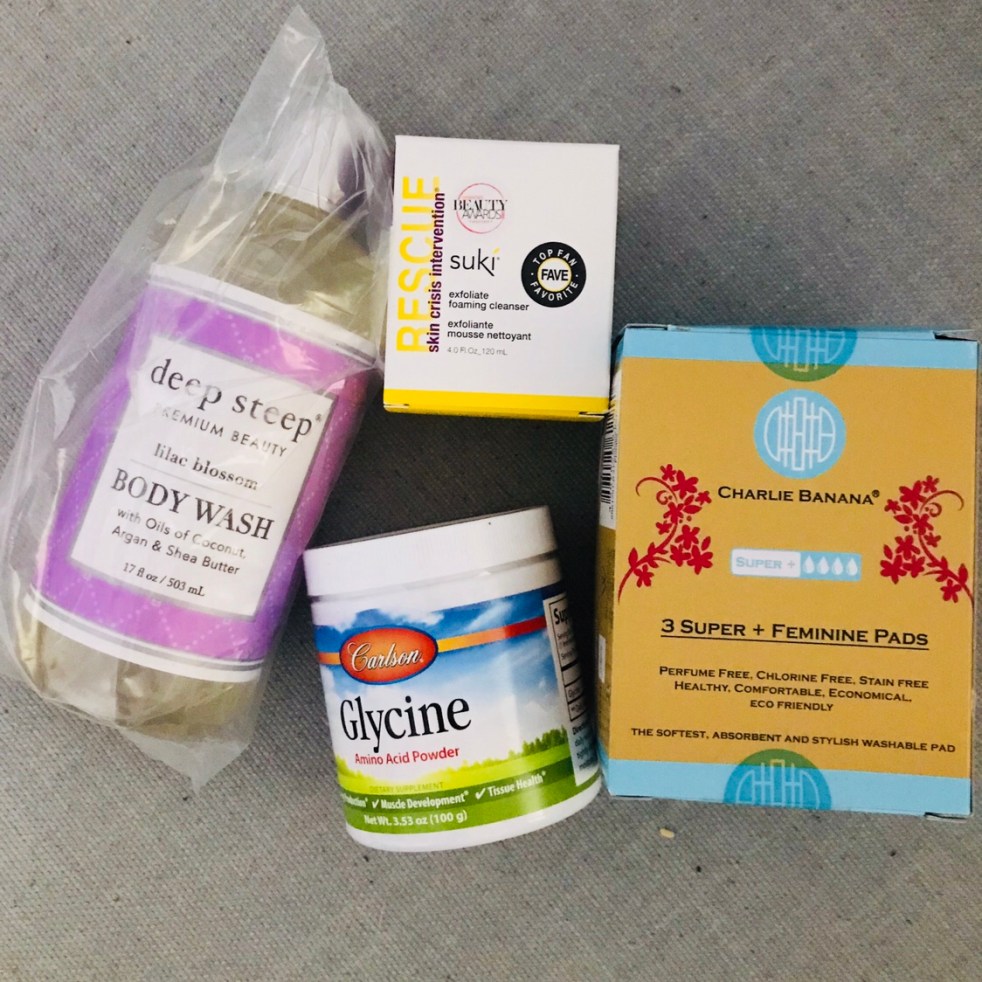 הזמנה קטנה להשלמת הסטוק בבית: פילינג מעולה לפנים, סבון גוף טבעי, תחבושות בד ואבקת גליצין